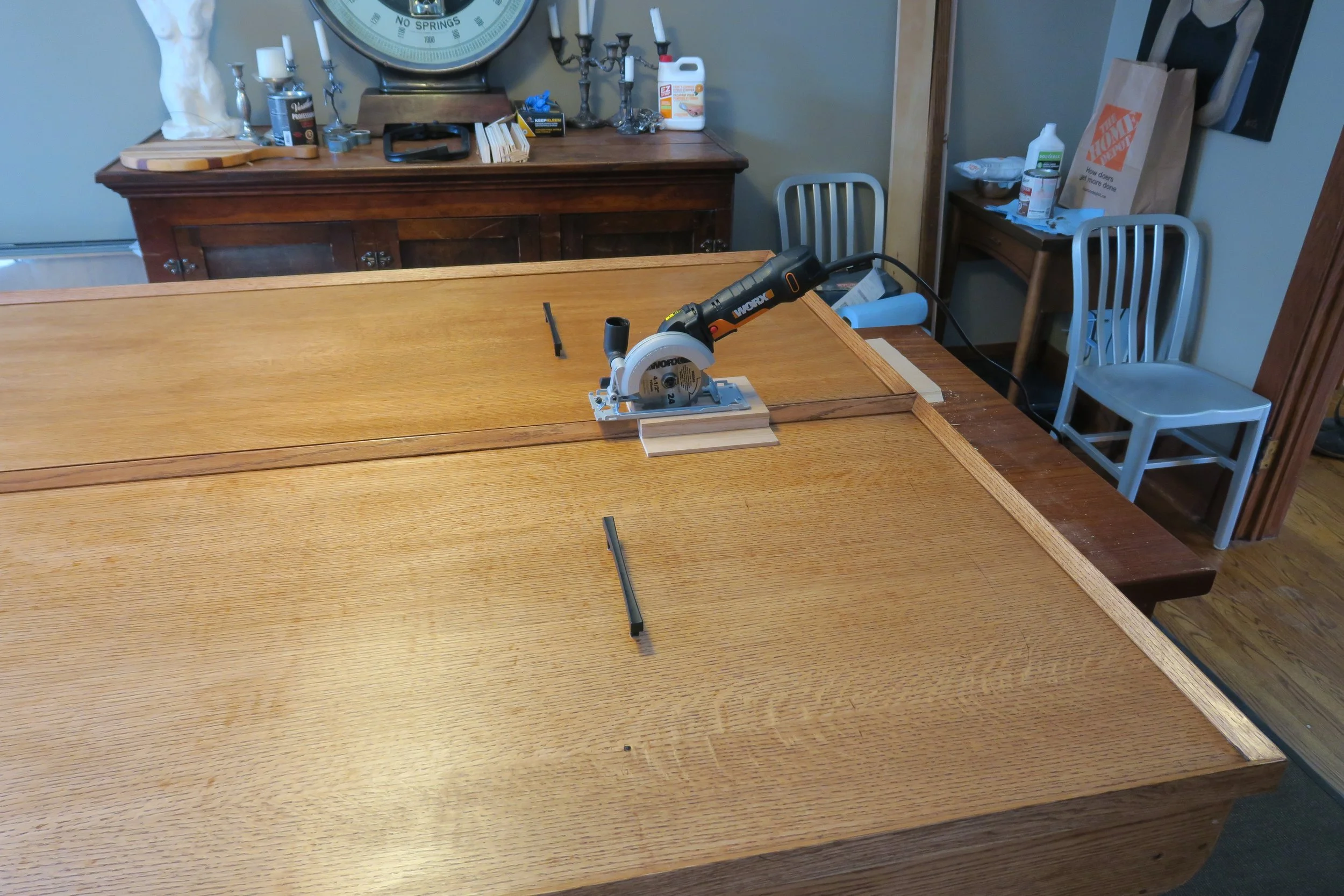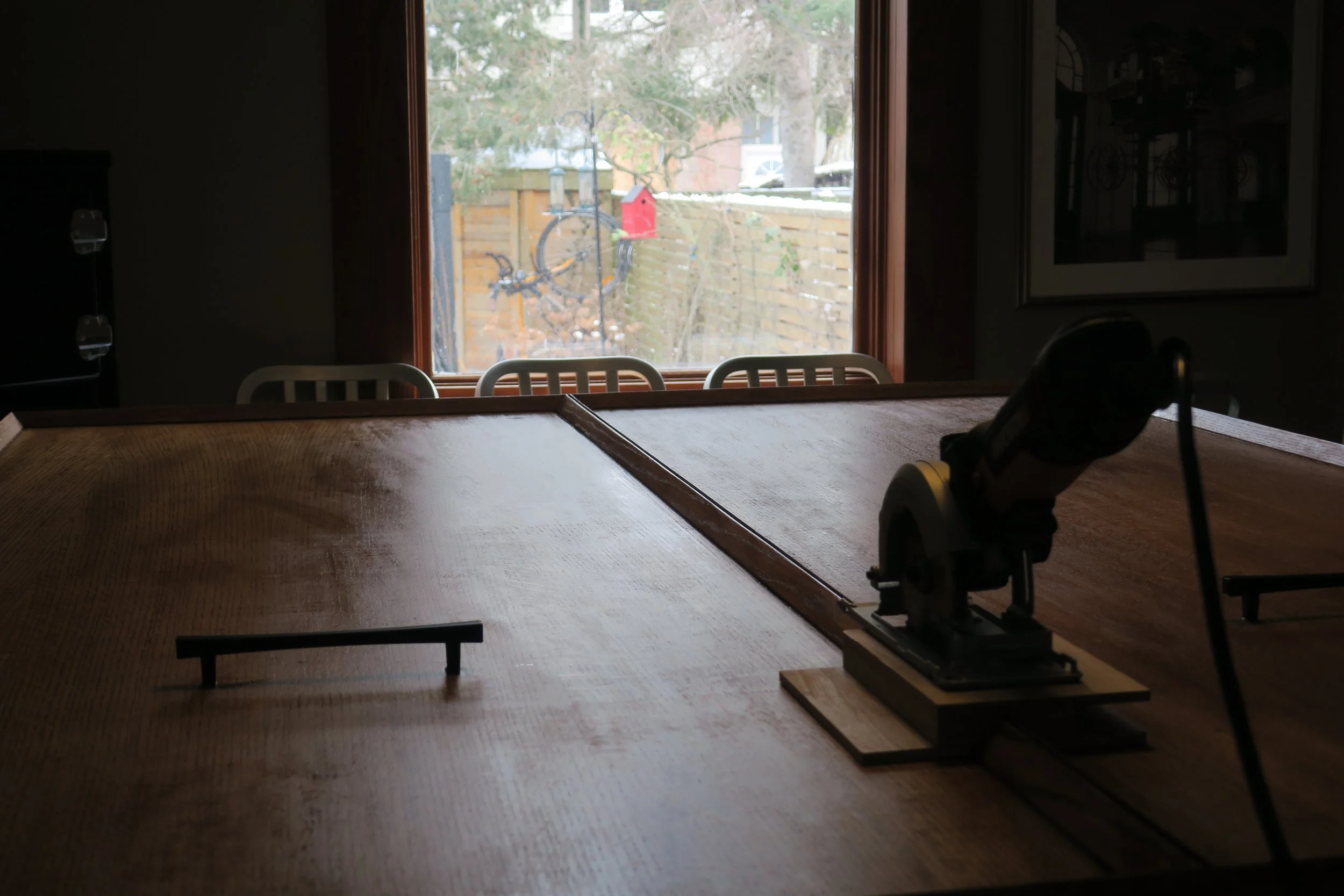 A pic after finishing with a combo stain/varnish product which was shite and had to be completely replaced with a proper stain amidst much gnashing of teeth.